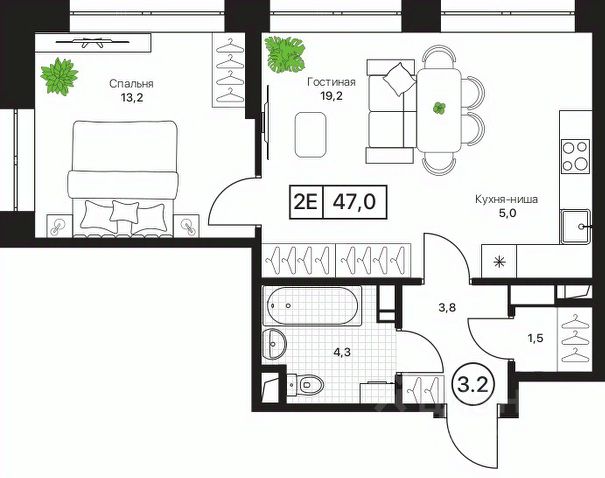 Квартира готова к заселению — можно заезжать и жить сразу, без дополнительных вложений. Подходит как для постоянного проживания, так и для инвестиций.