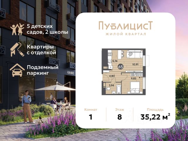 В продаже 1-комнатная квартира площадью 35.22 кв. м на 8 этаже. Квартира расположена в современном жилом комплексе "Публицист" от DOGMA, в корпусе 10. "Публицист" - это уникальный жилой квартал, который сочетает в себе современный комфорт и культурное наследие. Впечатляющая история локации и невероятные лесные пейзажи стали вдохновением для создания проекта комфорт-класса, где предусмотрено всё, чтобы больше времени уделять тому, что воодушевляет и радует. На территории квартала появятся пешеходные бульвары с местами для тихого отдыха, спортивные и игровые площадки из экологичных материалов, собственный лес для прогулок и семейных пикников. Украшением территории станут яркие инсталляции и живописное озеленение. Жилой комплекс "Публицист" - это комфортная и безопасная среда для всех. В дизайнерских лобби предусмотрены колясочные, места для хранения велосипедов, камерные лаунж-зоны и современные лифты. В зелёных дворах не будет машин. Для автомобилистов будет возведено 7 многоуровневых паркингов на 4 041 машино-место, 14 подземных паркингов для 3 780 автомобилей, гостевые парковки на 2 194 места. В составе проекта построят пять детских садов на 1500 мест, две школы для 3 300 учеников, физкультурно-оздоровительный комплекс и поликлинику, рассчитанную на 432 посещения в смену. Первые этажи домов займут коммерческие помещения. В шаговой доступности от квартала находятся торговые центры с кинотеатрами, строительные гипермаркеты, дворец спорта с бассейном. До пляжа реки Серебрянки - 17 минут пешком. На машине за 7 минут можно доехать до дендропарка ВНИИЛМ, за 30 минут - до Национального парка "Лосиный остров". Согласно рейтингу отраслевого СМИ "Все о стройке" в феврале 2026 года DOGMA занимает 3-е место в РФ по объему текущего строительства жилья, а также является крупнейшим застройщиком Краснодарского края. Продам 1-комнатную квартиру в ипотеку в Пушкино.