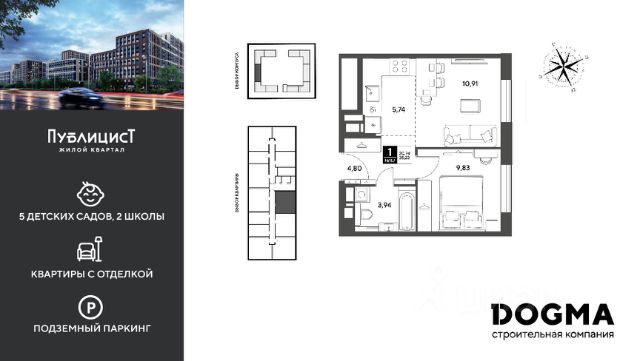 В продаже 1-комнатная квартира от DOGMA! Корпус 7. Срок сдачи: 2 кв. 2028, общей площадью 41.89 кв.м., на 9 этаже. На территории квартала появятся пешеходные бульвары с местами для отдыха, детские и спортивные площадки, свой собственный лес для прогулок. Будет построено пять детских садов на 1 500 мест, две школы для 3 300 учеников, физкультурно-оздоровительный комплекс и поликлиника, рассчитанная на 432 посещения в смену. В зелёных дворах не будет машин. Для автомобилистов будет возведено семь многоуровневых паркингов на 4 041 машино-место, 14 подземных паркингов для 3 780 автомобилей, гостевые парковки на 2 194 места. Первые этажи домов займут коммерческие помещения. В шаговой доступности от квартала находятся торговые центры с кинотеатрами, строительные гипермаркеты. Дворец спорта с бассейном. До пляжа реки Серебрянки — 17 минут пешком. На машине за семь минут можно доехать до дендропарка ВНИИЛМ, за 30 минут — до Национального парка "Лосиный остров". Продается 1-комнатная квартира от застройщика в Пушкино.