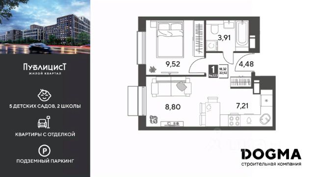 Продается 1-комн. кв-ра площадью 31.2 кв.м на 4 этаже 11 этажного дома в ЖК Новое Пушкино от компании ГК Инград. Расположение и транспорт Современный жилой квартал Новое Пушкино возводится в живописной части города Пушкино, рядом с Тишковским и Мученским лесопарками, Правдинским и Пушкинским лесничествами, рекой Учей и Учинским водохранилищем (водохранилище в 3 км).Жилой квартал находится в 21 км от МКАД по Ярославскому шоссе. На территории квартала имеются остановки общественного транспорта, в 1,5 км находится станция Заветы Ильича и в 2 км станция Пушкино Ярославского направления железной дороги. Путь до Москвы на автомобиле по Ярославскому шоссе занимает 20 минут, на электричке 40 минут. В 2025-26 гг. планируется открытие станции МЦД Пушкино.Инфраструктура Комплексное развитие территории проекта Новое Пушкино предполагает, одновременно с возведением жилых домов, строительство полной собственной инфраструктуры, которая будет включать в себя: 3 школы общей емкостью 2 650 мест (в 2018 году открылась новая муниципальная школа), 3 детских сада общей емкостью 740 мест (один детский сад на 230 мест построен и работает, в 2023г. планируется открытие еще одного), многофункциональный торгово-развлекательный центр, медико-диагностический комплекс с поликлиникой на 425 посещений в смену, дневным стационаром и подстанцией скорой медицинской помощи, физкультурно-оздоровительный комплекс, православный храм.На первых этажах корпусов сформирована коммерческая инфраструктура: магазины, салоны красоты и парикмахерские, аптеки, бутик цветов, фермерская лавка, кафе, рестораны, суши-бар, пекарня, детские развивающие центры.Прогулочные аллеи, велосипедные дорожки, спортивные и игровые площадки, зоны активности и творчества, места отдыха и добрососедского общения. Центральным элементом благоустройства квартала станет уютный пешеходный бульвар протяженностью 500 метров. Архитектура Архитектурно Новое Пушкино представляет собой ансамбль из монолитных домов в шоколадно-бежевой гамме с лаконичными вкраплениями терракотового оттенка. В домах предусмотрена повышенная шумо- и теплоизоляция, застекленные лоджии и угловое остекление. В новых домах будет использован вентилируемый фасад с применением керамогранитной облицовочной плитки. Подъезды спроектированы в уровень с землёй, входные группы оборудованы витражными окнами и светлыми холлами. В каждой жилой секции обустроены колясочные. Надежность застройщикаПАО ИНГРАД одна из крупнейших строительных компаний Москвы, которая с 2012 года строит жилые кварталы комфорт, бизнес и премиум-класса, объекты коммерческой, социальной и спортивной инфраструктуры. 1-комнатная квартира с отделкой в Пушкино.