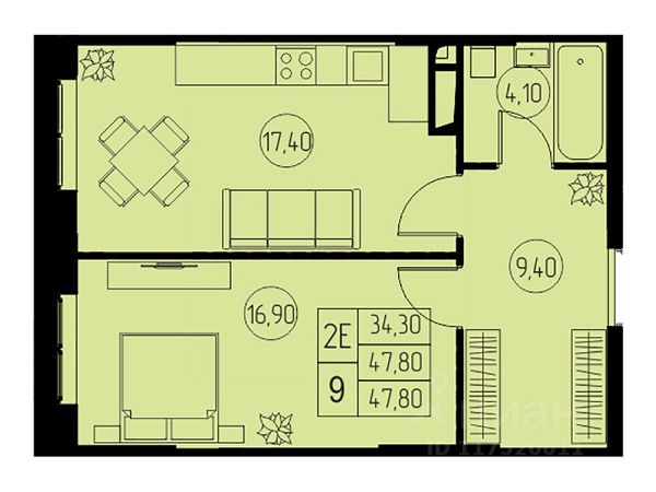 Планировка позволяет обустроить вместительные встроенные шкафы.
