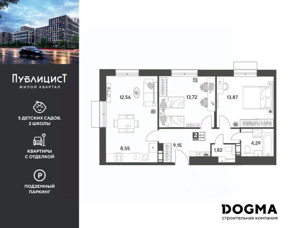 Прямая продажа от застройщика! Продается 2 комнатная квартира площадью 53.5 кв. м. на 10 этаже 13 этажного дома, 1 подъезд, номер 115. Чтобы забронировать, звоните в отдел продаж прямо сейчас! "Пушкино Град" — жилой квартал в 20 минутах от Москвы. Расположен в г. Пушкино на северо-востоке Подмосковья по Ярославскому шоссе. Исключительное местоположение и транспортная доступность: В пешей 10-минутной доступности ж/д платформа "Заветы Ильича". На общественном транспорте дорога займет всего 4 минуты Дорога до центра Москвы на электричке занимает 45 минут (м. Комсомольская) До станции МЦК Ростокино 30 минут Удобный выезд на Ярославское шоссе. Дорога до МКАД занимает всего 20 минут, а до ВДНХ 35 минут. Вся социальная инфраструктура на территории. В составе комплекса появятся два детских сада на 625 мест, общеобразовательная школа на 1275 учеников, поликлиника, акватермальный комплекс, торгово-развлекательный центр, многоуровневые паркинги. На первых этажах домов будут расположены магазины, кафе, пункты выдачи и аптеки. Жилой квартал строится в спокойном экологически благополучном районе. Всего в 15 минутах на автомобиле находится сосновый лес, а в 20 минутах находится Учинское водохранилище — идеальное место для отдыха. Доступны выгодные условия покупки квартир: семейная ипотека, военная семейная ипотека, IT-ипотека, траншевая ипотека, рассрочка от 0%. Успейте выбрать идеальную квартиру! Позвоните, чтобы узнать подробную информацию!