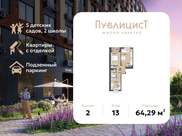 Прямая продажа от застройщика! Продается 2 комнатная квартира площадью 49.7 кв. м. на 13 этаже 17 этажного дома, 1 подъезд, номер 129. Чтобы забронировать, звоните в отдел продаж прямо сейчас! "Пушкино Град" — жилой квартал в 20 минутах от Москвы. Расположен в г. Пушкино на северо-востоке Подмосковья по Ярославскому шоссе. Исключительное местоположение и транспортная доступность: В пешей 10-минутной доступности ж/д платформа "Заветы Ильича". На общественном транспорте дорога займет всего 4 минуты Дорога до центра Москвы на электричке занимает 45 минут (м. Комсомольская) До станции МЦК Ростокино 30 минут Удобный выезд на Ярославское шоссе. Дорога до МКАД занимает всего 20 минут, а до ВДНХ 35 минут. Вся социальная инфраструктура на территории. В составе комплекса появятся два детских сада на 625 мест, общеобразовательная школа на 1275 учеников, поликлиника, акватермальный комплекс, торгово-развлекательный центр, многоуровневые паркинги. На первых этажах домов будут расположены магазины, кафе, пункты выдачи и аптеки. Жилой квартал строится в спокойном экологически благополучном районе. Всего в 15 минутах на автомобиле находится сосновый лес, а в 20 минутах находится Учинское водохранилище — идеальное место для отдыха. Доступны выгодные условия покупки квартир: семейная ипотека, военная семейная ипотека, IT-ипотека, траншевая ипотека, рассрочка от 0%. Успейте выбрать идеальную квартиру! Позвоните, чтобы узнать подробную информацию! Купить 2-комнатную квартиру на 13 этаже в Пушкино.