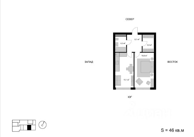 Евро-двушка: Просторная кухня-гостиная площадью 15,9 кв.м. станет сердцем вашего дома, идеальным местом для семейных ужинов и встреч с друзьями. Она включают в себя уютный холл (3,1 кв.м.), современный санузел (3,7 кв.м.) и, конечно же, кухню-гостиную.
