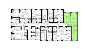 На этаже — отдельный коридор с дверью на три квартиры, что обеспечивает приватность и тишину. Рядом — магазины, школы, детские сады, аптеки, кафе, спортивная инфраструктура.