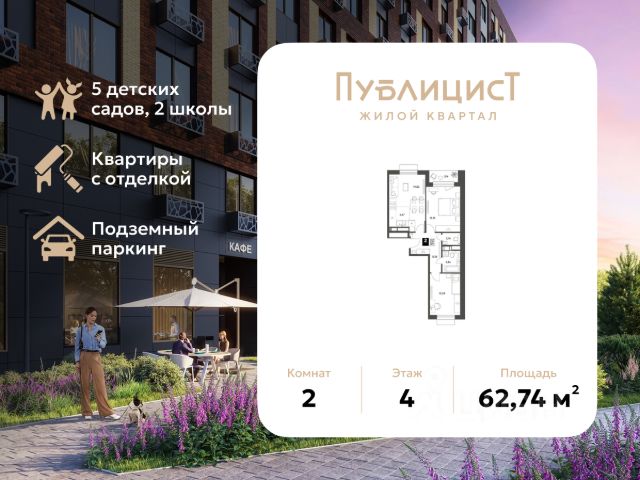 В продаже 2-комнатная квартира площадью 61.11 кв. м на 4 этаже. Квартира расположена в современном жилом комплексе "Публицист" от DOGMA, в корпусе 12. "Публицист" - это уникальный жилой квартал, который сочетает в себе современный комфорт и культурное наследие. Впечатляющая история локации и невероятные лесные пейзажи стали вдохновением для создания проекта комфорт-класса, где предусмотрено всё, чтобы больше времени уделять тому, что воодушевляет и радует. На территории квартала появятся пешеходные бульвары с местами для тихого отдыха, спортивные и игровые площадки из экологичных материалов, собственный лес для прогулок и семейных пикников. Украшением территории станут яркие инсталляции и живописное озеленение. Жилой комплекс "Публицист" - это комфортная и безопасная среда для всех. В дизайнерских лобби предусмотрены колясочные, места для хранения велосипедов, камерные лаунж-зоны и современные лифты. В зелёных дворах не будет машин. Для автомобилистов будет возведено 7 многоуровневых паркингов на 4 041 машино-место, 14 подземных паркингов для 3 780 автомобилей, гостевые парковки на 2 194 места. В составе проекта построят пять детских садов на 1500 мест, две школы для 3 300 учеников, физкультурно-оздоровительный комплекс и поликлинику, рассчитанную на 432 посещения в смену. Первые этажи домов займут коммерческие помещения. В шаговой доступности от квартала находятся торговые центры с кинотеатрами, строительные гипермаркеты, дворец спорта с бассейном. До пляжа реки Серебрянки - 17 минут пешком. На машине за 7 минут можно доехать до дендропарка ВНИИЛМ, за 30 минут - до Национального парка "Лосиный остров". Согласно рейтингу отраслевого СМИ "Все о стройке" в феврале 2026 года DOGMA занимает 3-е место в РФ по объему текущего строительства жилья, а также является крупнейшим застройщиком Краснодарского края. Продается 2-комнатная квартира на 4 этаже в Пушкино.