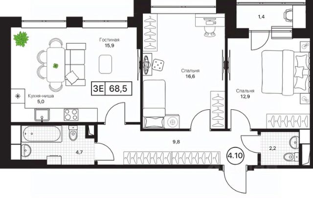 198 500 ₽/м²