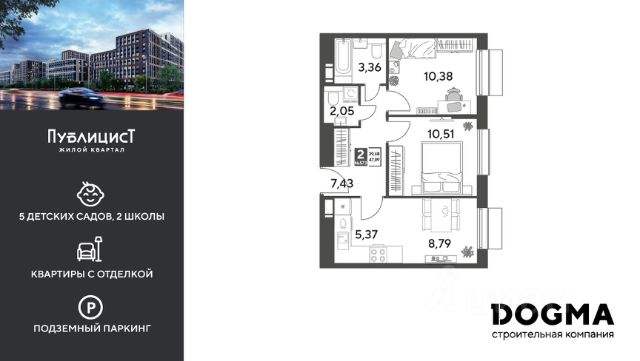 В продаже 2-комнатная квартира от DOGMA! Корпус 7. Срок сдачи: 2 кв. 2028, общей площадью 62.42 кв.м., на 5 этаже. На территории квартала появятся пешеходные бульвары с местами для отдыха, детские и спортивные площадки, свой собственный лес для прогулок. Будет построено пять детских садов на 1 500 мест, две школы для 3 300 учеников, физкультурно-оздоровительный комплекс и поликлиника, рассчитанная на 432 посещения в смену. В зелёных дворах не будет машин. Для автомобилистов будет возведено семь многоуровневых паркингов на 4 041 машино-место, 14 подземных паркингов для 3 780 автомобилей, гостевые парковки на 2 194 места. Первые этажи домов займут коммерческие помещения. В шаговой доступности от квартала находятся торговые центры с кинотеатрами, строительные гипермаркеты. Дворец спорта с бассейном. До пляжа реки Серебрянки — 17 минут пешком. На машине за семь минут можно доехать до дендропарка ВНИИЛМ, за 30 минут — до Национального парка "Лосиный остров".