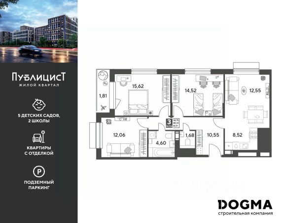 Прямая продажа от застройщика! Продается 3 комнатная квартира площадью 54 кв. м. на 7 этаже 17 этажного дома, 1 подъезд, номер 60. Чтобы забронировать, звоните в отдел продаж прямо сейчас! "Пушкино Град" — жилой квартал в 20 минутах от Москвы. Расположен в г. Пушкино на северо-востоке Подмосковья по Ярославскому шоссе. Исключительное местоположение и транспортная доступность: В пешей 10-минутной доступности ж/д платформа "Заветы Ильича". На общественном транспорте дорога займет всего 4 минуты Дорога до центра Москвы на электричке занимает 45 минут (м. Комсомольская) До станции МЦК Ростокино 30 минут Удобный выезд на Ярославское шоссе. Дорога до МКАД занимает всего 20 минут, а до ВДНХ 35 минут. Вся социальная инфраструктура на территории. В составе комплекса появятся два детских сада на 625 мест, общеобразовательная школа на 1275 учеников, поликлиника, акватермальный комплекс, торгово-развлекательный центр, многоуровневые паркинги. На первых этажах домов будут расположены магазины, кафе, пункты выдачи и аптеки. Жилой квартал строится в спокойном экологически благополучном районе. Всего в 15 минутах на автомобиле находится сосновый лес, а в 20 минутах находится Учинское водохранилище — идеальное место для отдыха. Доступны выгодные условия покупки квартир: семейная ипотека, военная семейная ипотека, IT-ипотека, траншевая ипотека, рассрочка от 0%. Успейте выбрать идеальную квартиру! Позвоните, чтобы узнать подробную информацию! 3-комнатная квартира до 18 млн. рублей в Пушкино.