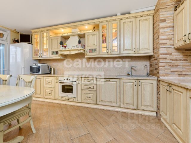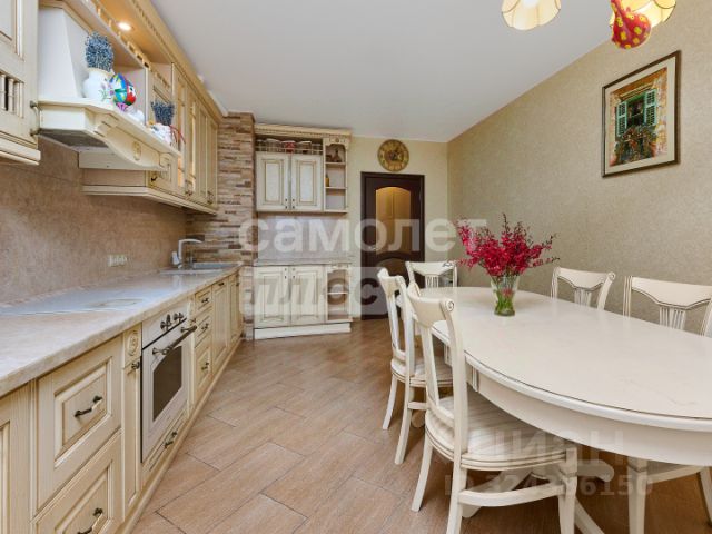 Просторная кухня-гостиная, с зонированием столовой и гостиной. Кухня оборудована встроенной техникой, в частности посудомоечной машиной, холодильником, морозильником сплит системой и прочим необходимым. Так же в гостиной вместительный шкаф купе для хранения.