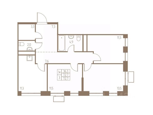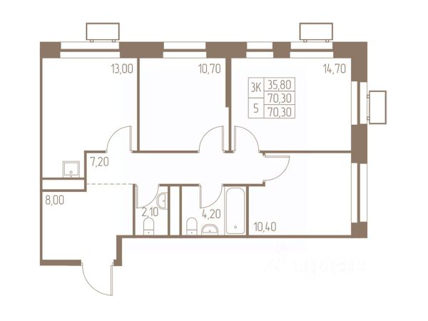 Три изолированные, укомплектованные спальными местами, хранением, рабочими зонами, комнаты, одна с просторной лоджией и с теплыми полами, что дает возможность организовать зону отдыха.