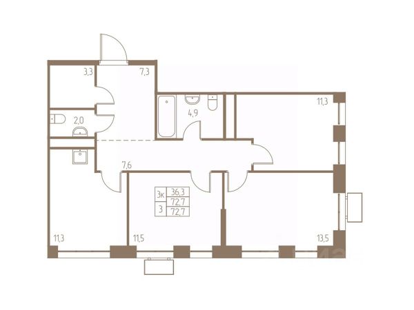 Оптимальная планировка: большой квадратный холл, светлая и просторная кухня (14,5 кв.м), три изолированные спальни (16, 11 и 14 кв.м.), просторная ванная комната , гардеробная для хранения вещей
