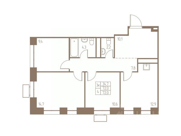 • ✓ В базе Циан 14 3-комнатных квартир на 4 этаже в микрорайоне Центральный в городе Пушкино