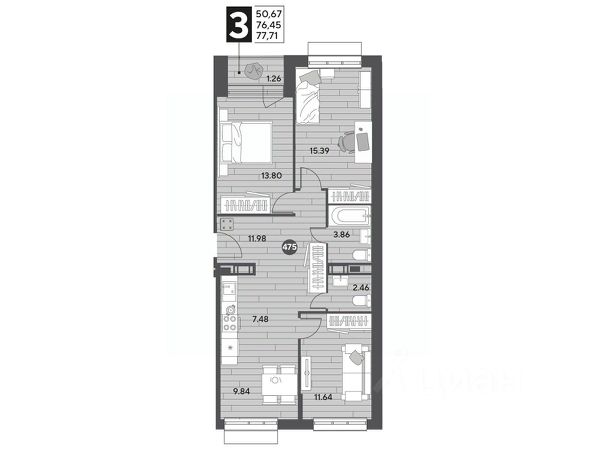 Прямая продажа от застройщика! Продается 3 комнатная квартира площадью 55.4 кв. м. на 11 этаже 17 этажного дома, 1 подъезд, номер 100. Чтобы забронировать, звоните в отдел продаж прямо сейчас! "Пушкино Град" — жилой квартал в 20 минутах от Москвы. Расположен в г. Пушкино на северо-востоке Подмосковья по Ярославскому шоссе. Исключительное местоположение и транспортная доступность: В пешей 10-минутной доступности ж/д платформа "Заветы Ильича". На общественном транспорте дорога займет всего 4 минуты Дорога до центра Москвы на электричке занимает 45 минут (м. Комсомольская) До станции МЦК Ростокино 30 минут Удобный выезд на Ярославское шоссе. Дорога до МКАД занимает всего 20 минут, а до ВДНХ 35 минут. Вся социальная инфраструктура на территории. В составе комплекса появятся два детских сада на 625 мест, общеобразовательная школа на 1275 учеников, поликлиника, акватермальный комплекс, торгово-развлекательный центр, многоуровневые паркинги. На первых этажах домов будут расположены магазины, кафе, пункты выдачи и аптеки. Жилой квартал строится в спокойном экологически благополучном районе. Всего в 15 минутах на автомобиле находится сосновый лес, а в 20 минутах находится Учинское водохранилище — идеальное место для отдыха. Доступны выгодные условия покупки квартир: семейная ипотека, военная семейная ипотека, IT-ипотека, траншевая ипотека, рассрочка от 0%. Успейте выбрать идеальную квартиру! Позвоните, чтобы узнать подробную информацию!