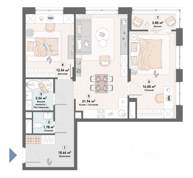 Продаётся 3-комнатная квартира в строящемся доме (Корпус 1), срок сдачи: I-кв. 2027, общей площадью 69.37 кв.м., на 9 этаже. Новый жилой комплекс "Триумф" от застройщика "Корпорация ВИТ" расположен по адресу: Россия, Московская область, Пушкино, Надсоновская улица