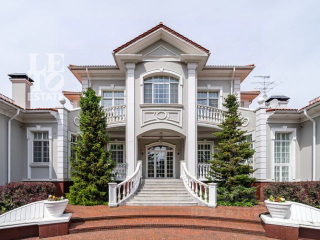 На лесном участке в 74 сотки расположен основной дом 1300 кв.м с шестью спальнями, просторной гостиной, каминным залом и выходом в зимний сад, где зелень растений радует круглый год, бассейном, спа зоной, тренажерным залом, библиотекой, кинотеатром и многочисленными помещениями для досуга. На территории усадьбы расположены: отдельно стоящая деревянная баня и дом для приема гостей c отдельной барбекю зоной, двухэтажный дом для персонала, совмещенный с гостевым домом, гараж для специализированной техники, навес для автомобилей, ротонда, круглогодичная теплица, теннисный корт. На участке выполнен ландшафтный дизайн по индивидуальному проекту. Сделан дренаж, установлена системы автополива, выведено зонированное уличное освещение, в центральной части перед парадным входом установлен фонтан, часть участка занимает плодовый сад (яблони, вишни, груши, плодовые кустарники). На участке бережно сохранены многолетние дубы и сосны.