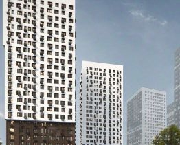 В доме имеется стилобат, где расположена детская площадка.
