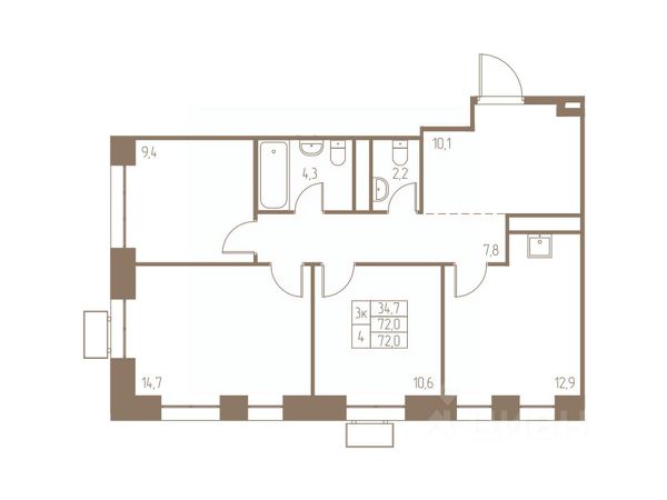 Вместе с квартирой, за дополнительную плату возможно приобрести кладовое помещение 5м2, в -1 этаже.
