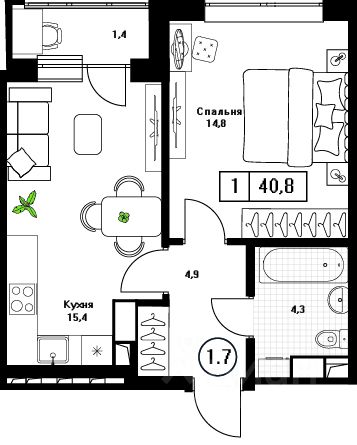 Прямая продажа от застройщика! Продается 1 комнатная квартира площадью 40.8 кв. м. на 5 этаже 13 этажного дома, 1 подъезд, номер 49. Чтобы забронировать, звоните в отдел продаж прямо сейчас! "Пушкино Град" — жилой квартал в 20 минутах от Москвы. Расположен в г. Пушкино на северо-востоке Подмосковья по Ярославскому шоссе. Исключительное местоположение и транспортная доступность: В пешей 10-минутной доступности ж/д платформа "Заветы Ильича". На общественном транспорте дорога займет всего 4 минуты Дорога до центра Москвы на электричке занимает 45 минут (м. Комсомольская) До станции МЦК Ростокино 30 минут Удобный выезд на Ярославское шоссе. Дорога до МКАД занимает всего 20 минут, а до ВДНХ 35 минут. Вся социальная инфраструктура на территории. В составе комплекса появятся два детских сада на 625 мест, общеобразовательная школа на 1275 учеников, поликлиника, акватермальный комплекс, торгово-развлекательный центр, многоуровневые паркинги. На первых этажах домов будут расположены магазины, кафе, пункты выдачи и аптеки. Жилой квартал строится в спокойном экологически благополучном районе. Всего в 15 минутах на автомобиле находится сосновый лес, а в 20 минутах находится Учинское водохранилище — идеальное место для отдыха. Доступны выгодные условия покупки квартир: семейная ипотека, военная семейная ипотека, IT-ипотека, траншевая ипотека, рассрочка от 0%. Успейте выбрать идеальную квартиру! Позвоните, чтобы узнать подробную информацию! Продается квартира на 5 этаже в Пушкино.