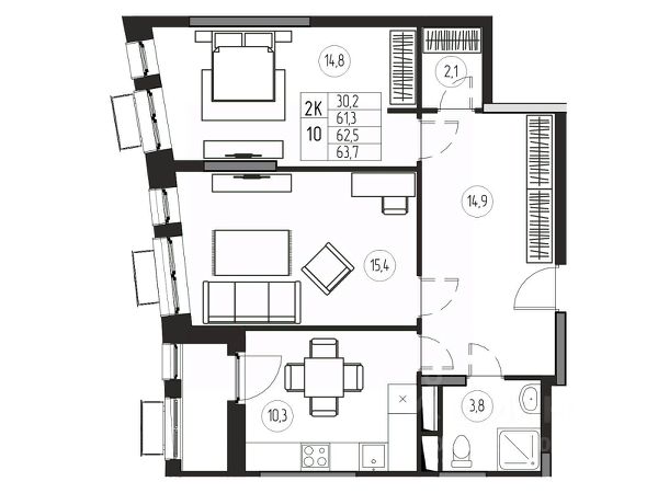 Квартира расположена на 8 этаже 10-этажного дома с удачной планировкой, распашными дверями в комнату, просторной кухней (12,3 кв. м.), раздельным санузлом и двумя остекленными лоджиями с отделкой.