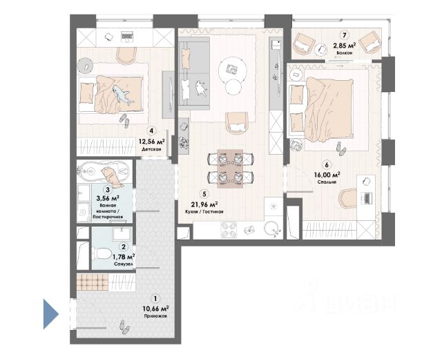 Один взрослый собственник, более 5 лет. Свободная продажа.