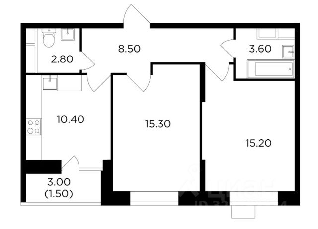 Общая площадь 52 метра (без учета площади лоджии), кухня 10 метров, изолированные комнаты 11,1 метра и 13,3 метра, просторный светлый холл, 2 раздельных санузла, широкая лоджия 3,4 метра застеклена.