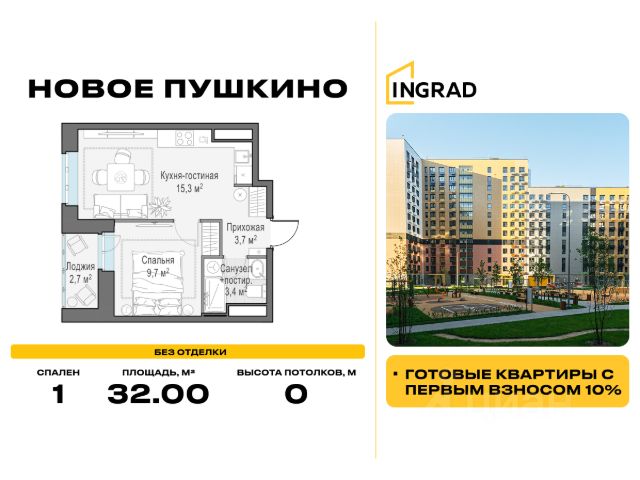 Прямая продажа от девелопера. В жилом квартале комфорт-класса "Новое Пушкино" (девелопер Ingrad) продаётся 1-спальная квартира площадью 32.20 кв.м без отделки. Квартира расположена на 13 этаже 13-этажного дома, корпус 28. Расположение и окружение: Жилой квартал "Новое Пушкино" расположен в экологичном городе Пушкино. Рядом с кварталами расположены: Северный лесопарк - 650 м, пушкинский ЦПКиО - 1 км, дендрарий - 1 км, ферма-экопарк "Птичник" - 1,2 км, парк "Серебрянка" вдоль одноимённой реки - 3,5 км. В окрестностях есть большие водоёмы и лесные массивы, где можно загорать, плавать и наслаждаться пикником на берегу. Отличная транспортная доступность: До Ярославского шоссе, по которому можно добраться до МКАД, всего 3 км. Важным пунктом развития инфраструктуры станет строительство Мытищинской хорды (Северного дублёра МКАД). Железнодорожные станции Заветы Ильича и Пушкино расположены в 1,5 км и 3 км.. Инфраструктура: "Новое Пушкино" - новый "5-минутный город" с собственной развитой инфраструктурой, где всё необходимое находится в пределах пяти минут пешей прогулки. Район уже полностью сложился: социальные и сервисные объекты функционируют, обеспечивая жителям высокий уровень комфорта и удобства. В нём уже построено 29 домов, работают два детских сада и школа. Свой прогулочный бульвар протяжённостью более 500 м располагает пространствами для отдыха, занятий спортом и встреч с друзьями. Здесь есть велосипедные дорожки, воркаут-зоны, теннисные столы и детские площадки. На первых этажах домов открыты кафе, магазины и сервисы, которые упрощают повседневные дела. Запланировано строительство торгового центра. квартира в готовой новостройке в Пушкино.