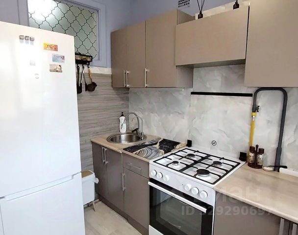В квартире сделан ремонт. На кухне установлен кухонный гарнитур с бытовой техникой. Напольное покрытие- линолеум, покрытие стен-обои. Установлен фильтр для воды.