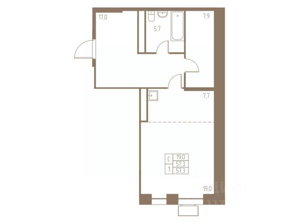• ✅ Объект наибольшей площади: 57,3 м²