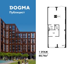 В реализации — коммерческое помещение свободного назначения в литере 11 общей площадью кв.м. на 1 этаже от застройщика DOGMA в жилом квартале "Публицист", который расположен в г. Пушкино (Московская область).
