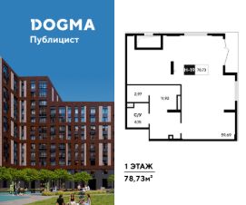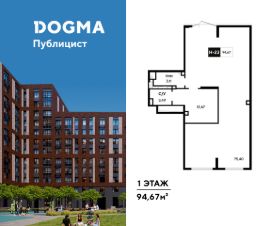 В реализации — коммерческое помещение свободного назначения в литере 12 общей площадью кв.м. на 1 этаже от застройщика DOGMA в жилом квартале "Публицист", который расположен в г. Пушкино (Московская область).