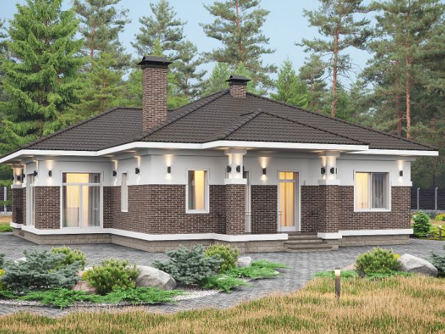 1 этаж: прихожая с просторной гардеробной (17,5 кв.м), кухня-столовая-гостиная (66,2) с выходом на остекленную веранду (50,6), спальня (15,1) с собственным выходом на крыльцо (48,1), кабинет (18,6) с выходом на крыльцо (16,4), гостевой с/у (6,9), постирочная (6,1) с кладовой для хранения вещей (6), котельная (6), лестница-библиотека (13,7), коридор (13,3).