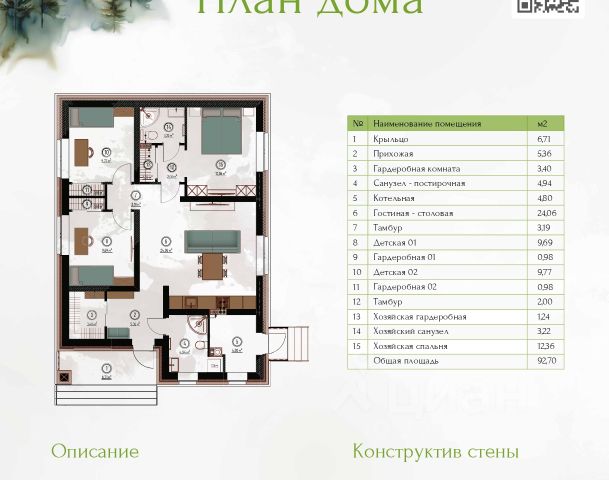 На цокольном этаже — кинотеатр с кухней и дровяным камином, сауна с купелью, постирочная, котельная, с/у, спортзал.