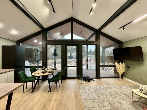 Дом одноэтажный, деревянный, готовый к круглогодичному проживанию: прихожая, просторная гостиная, кухня, две спальные комнаты, подсобная комната. Коммуникации: центральные газ и электричество 15 кВт, отопление газовое АГВ, вода две скважины с питьевой и технической водой.