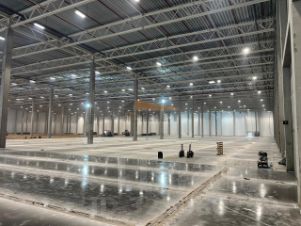 Бетонный пол с антипылевым покрытием. Допустимая нагрузка на пол 9 т/м2. Рабочая высота потолков 12м. Доковые ворота - 9 шт. с в выравнивающими площадками и уплотнительными контурами. Спринклерная система пожаротушения и пожарная сигнализация. Встроенные офисно-бытовые помещения в обоих крыльях здания.