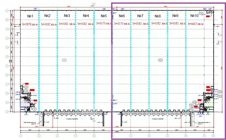 Количество ворот: 16 шт. (15 шт. Докового типа, 1 шт. На нулевой отметке)