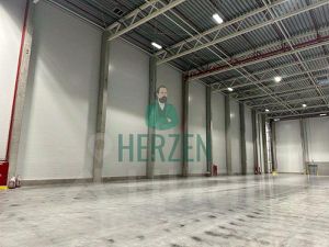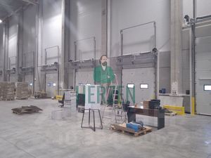 Ровный бетонный пол с антипылевым покрытием. Допустимая нагрузка на пол 8 т/м2