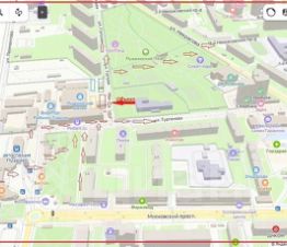 *На второй улице по интенсивности трафика в городе. Движение указано стрелками. Поток размеренный, не бегущий.