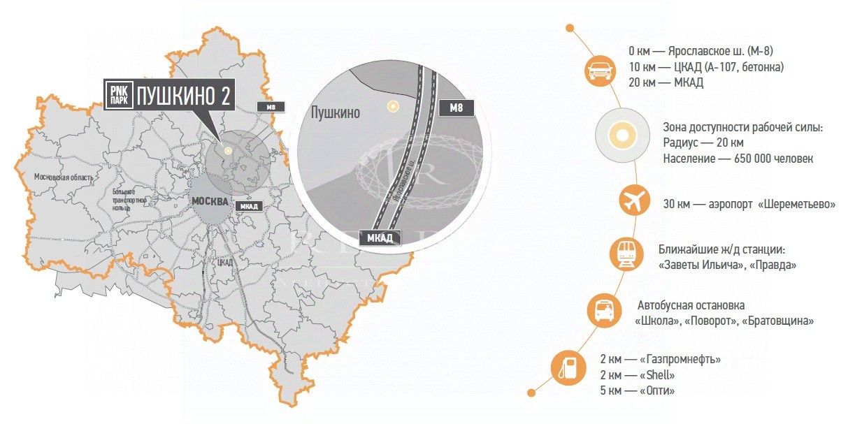 Склад расположен в Северо-Восточном направлении по адресу: