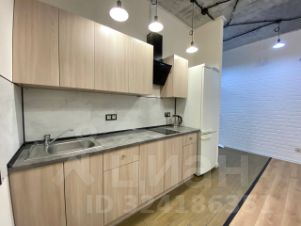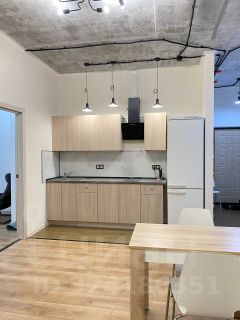 В кухонной зоне - кухонный гарнитур с электрической варочной панелью, духовкой и вытяжкой, двухкамерный холодильник и электрический чайник.
