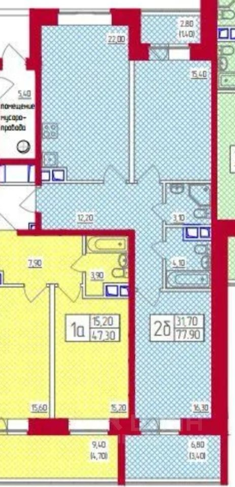 2 отдельных спальни (16 кв. метров каждая) с выходами на лоджии.