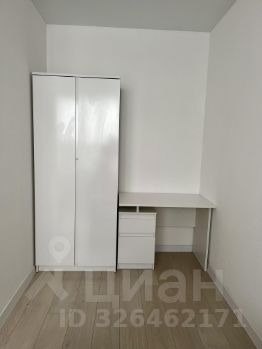 В комнате новый двухместный диван фирмы Аскона. Отдельно выделили зону с рабочим столом. Вместительный шкаф и комод.