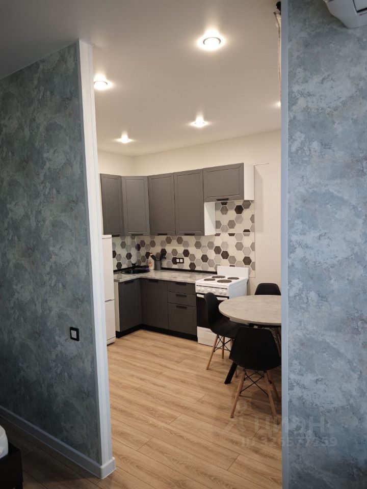 Площадь квартиры 34 кв.м., застекленная и утепленная лоджия с выходом из кухни.