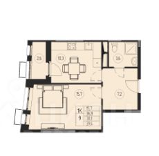 Квартира свободной планировки, 40 м²