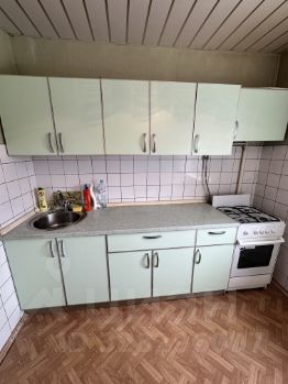 В квартире есть большой 2х-спальный диван и односпальный диванчик. Есть холодильник и новая стиральная машинка.