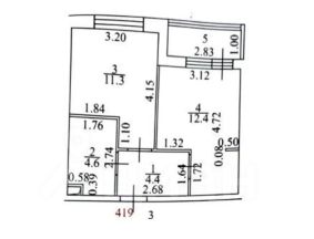 Просторная кухня 11 кв.м, комната 12 кв. м, застекленная лоджия 3 кв. м, совмещенный санузел 4 кв. м, коридор 4 кв. м.