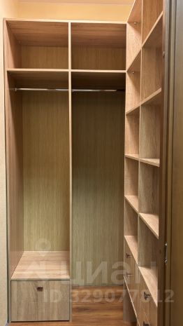 Из мебели — диван, комод, стеллаж и гардеробная.
