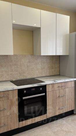 Кухня площадью 11 м² оборудована всем необходимым: встроенная варочная панель, духовой шкаф, холодильник.
