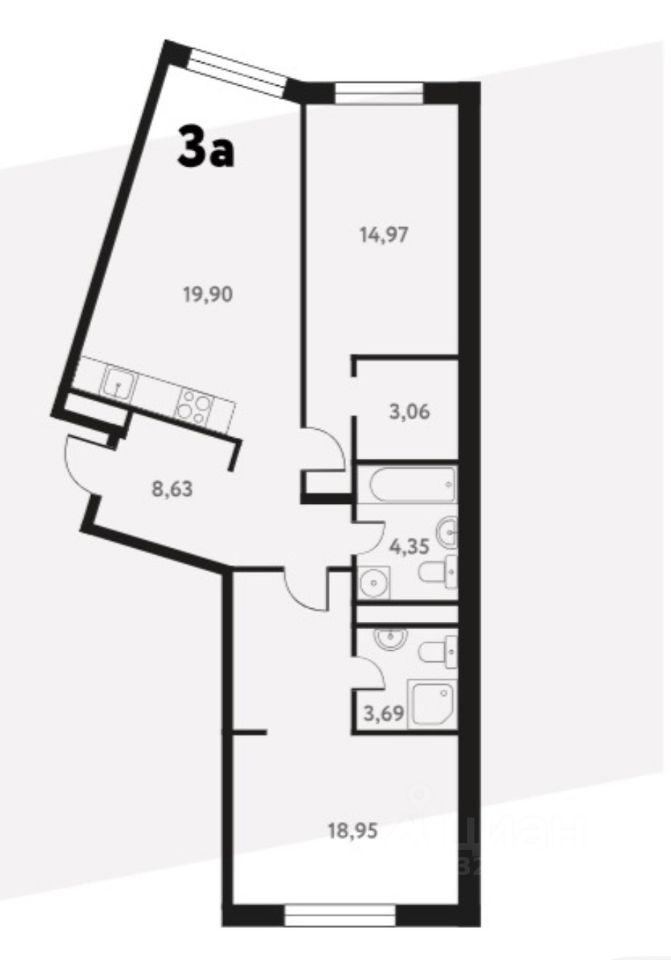 Сдаётся просторная трёхкомнатная квартира в Россия. Общая площадь — 73 кв. м, кухня — 20 кв. м. Квартира расположена на 1-м этаже 17-этажного дома. Высота потолков составляет 2,7 метра, окна выходят как на улицу, так и во двор.