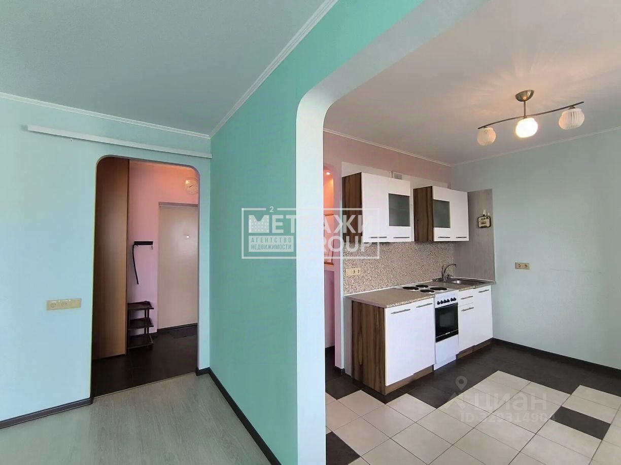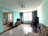 Общая площадь квартиры 45.5 метра, комната 20 метров и кухней 12 метров. Окна пластик.